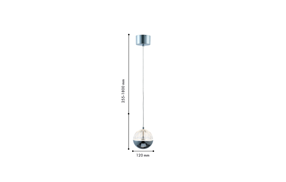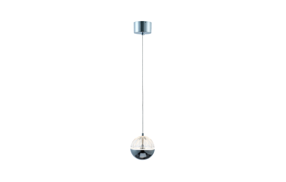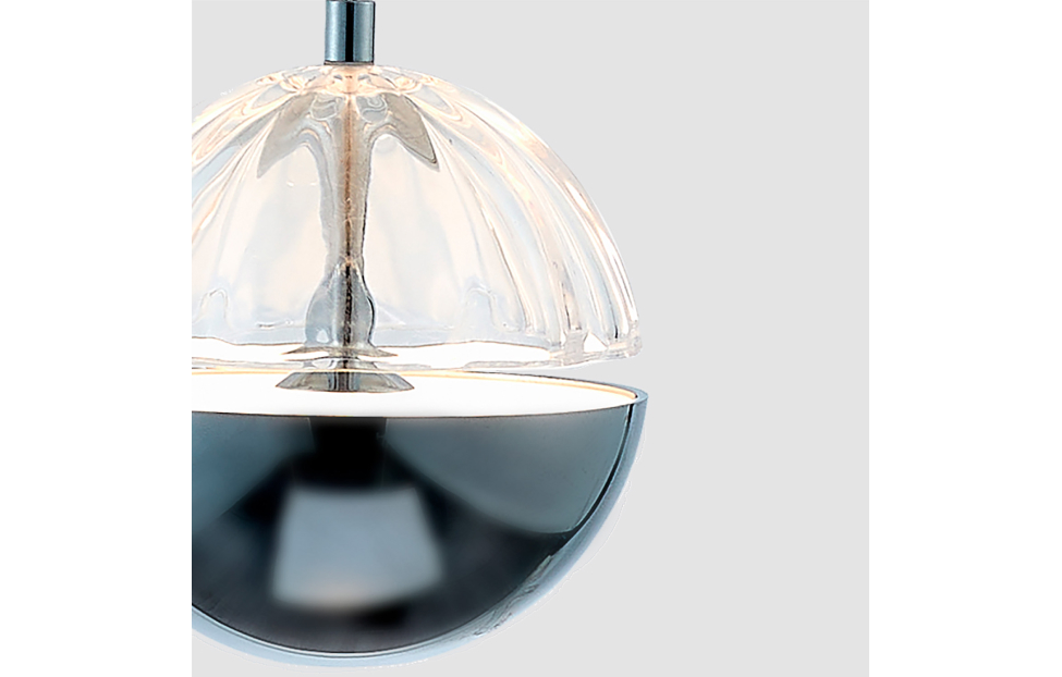 Коллекция Ballonger идеально подойдет для оформления интерьера гостиной, лестничных пролетов, кухонного островка или прикроватных зон. Особенность плафонов заключается в сочетании стеклянной рельефной полусферы с металлической полусферой, внутри которой расположен LED-модуль. Между полусферами оставлен зазор, создающий яркую полоску света. Металлическая часть плафона снизу оснащена небольшим круглым светодиодом, который добавляет изящный световой акцент. Металлический каркас в цвете хром и прозрачное стекло плафона, два источника света - внутри плафона направленный поток освещает прозрачную полусферу и струится в щель между половинками сферы, в нижнюю полусферу встроен модуль LED, который дает направленный вниз поток света, регулируемая высота.