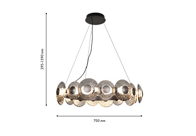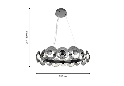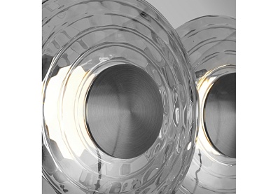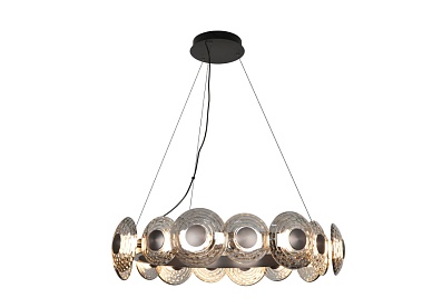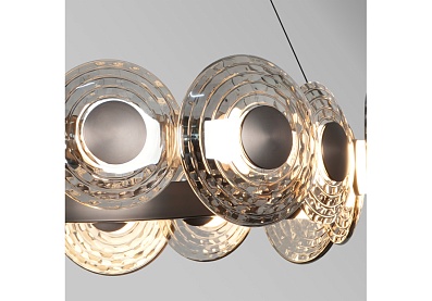 В основе дизайна светильников Claros лежат стеклянные закругленные фактурные плафоны, напоминающие изящные тарелки, между которыми встроены модули LED, создающие мягкое и комфортное освещение. Коллекция включает в себя одиночные подвесы, люстры, а также два вида настенных светильников, что позволяет создавать комплексное освещение пространства в едином стиле. Люстры можно легко комбинировать в оригинальные световые композиции, используя универсальные крепления, что дает простор для творческих решений и индивидуального подхода к оформлению интерьера. Металлический каркас черного матового цвета, закругленный фактурный плафон из стекла дымчато-серого цвета, регулируемая высота, LED-модуль