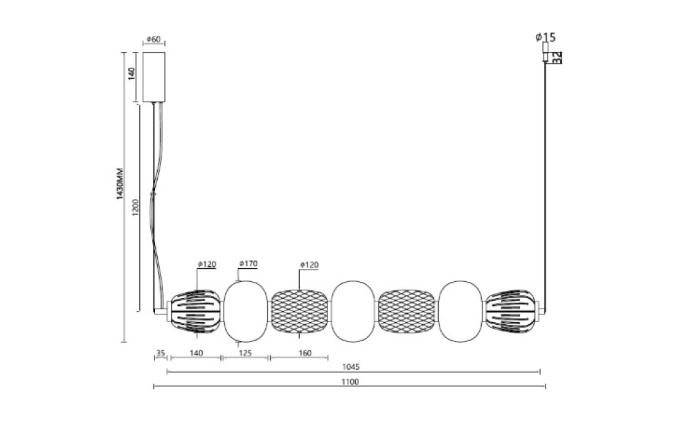 Цена на Подвесная люстра Bella L1100*W170*H230/1430 LED*47W от производителя , оплата наличным или безналичным расчетом!