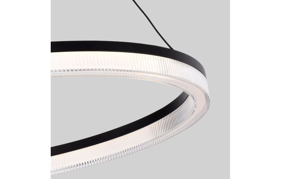Коллекция светильников Cirkler представляет собой серию кольцевых подвесных люстр, выполненных в двух цветах —золотом и черном. Благодаря своей универсальности, светильники можно сочетать между собой и использовать крепления для создания композиций и 2-х или 3-х ярусных ламп. Подвесная люстра с черным каркасом, декоративный акриловый плафон со сложным многослойным оптическим узором, регулируемая высота.