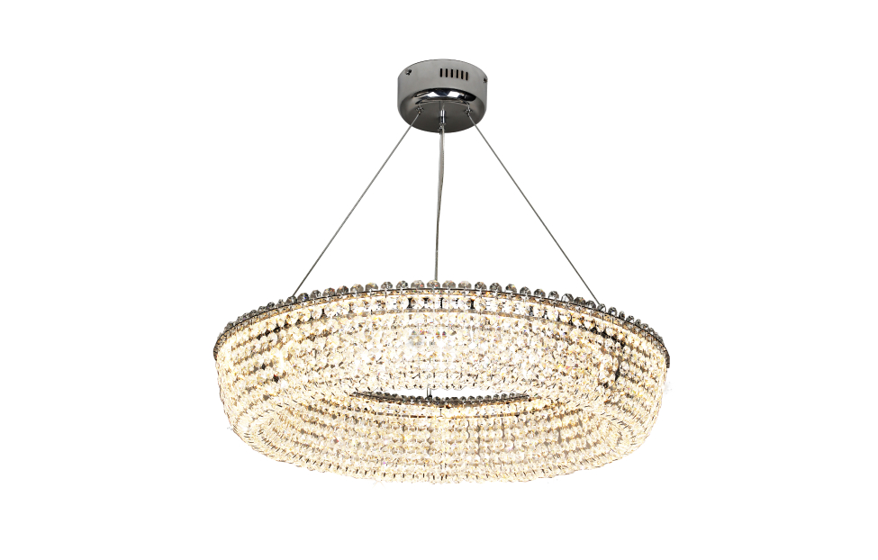 Коллекция Estrada имеет кольцевое строение. На каркас с внешней и внутренней стороны крепятся нити кристаллов, создавая эффектное оформление. Для освещения используется LED-лента с диммируемыми светодиодами, которая проходит внутри кольца. Игра света сквозь нити кристаллов добавляет роскоши и элегантности люстре. Металлический хромированный каркас, хрусталь высшего качества, встроенная лента со светодиодами внутри кольца, регулируемая высота, пульт управления.