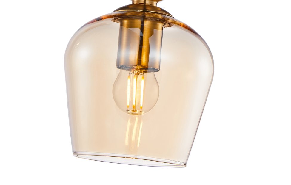 Подвесные светильники Dubbel станут идеальным решением для тех, кто ценит элегантность, функциональность и современный дизайн. Особенностью коллекции стало разнообразие форм стеклянных выдувных плафонов, которые представлены в пяти вариациях, в сочетании с металлическими элементами. Металлический каркас в цвете латунь, выдувной плафон янтарного цвета, цоколь Е27,сменная лампа, регулируемая высота.