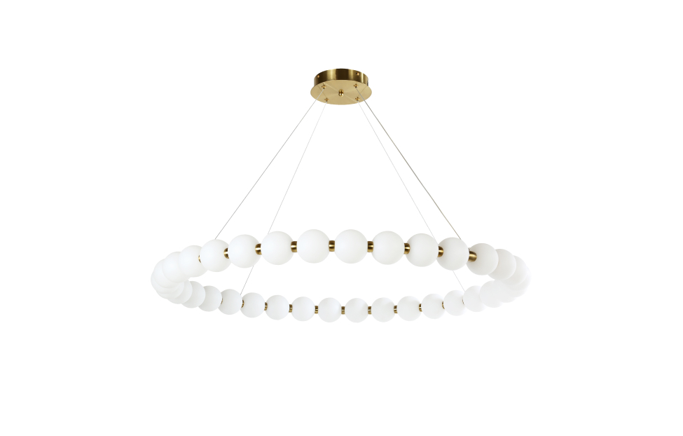 Gubbare – светодиодная коллекция в виде белоснежного ожерелья на золотом каркасе. Плафоны выполнены из акриловых шаров белого цвета высокого качества. Они пропускают и рассеивают свет ровнее и мягче, чем обычное стекло. И в отличие от него, мало весят, легки в уходе и невероятно прочны (не бьются). Это незаменимая модель, которая станет не только новым арт-объектом интерьера, но и прекрасно его осветит. Не слепит глаз. Подвесные люстры можно регулировать по высоте.