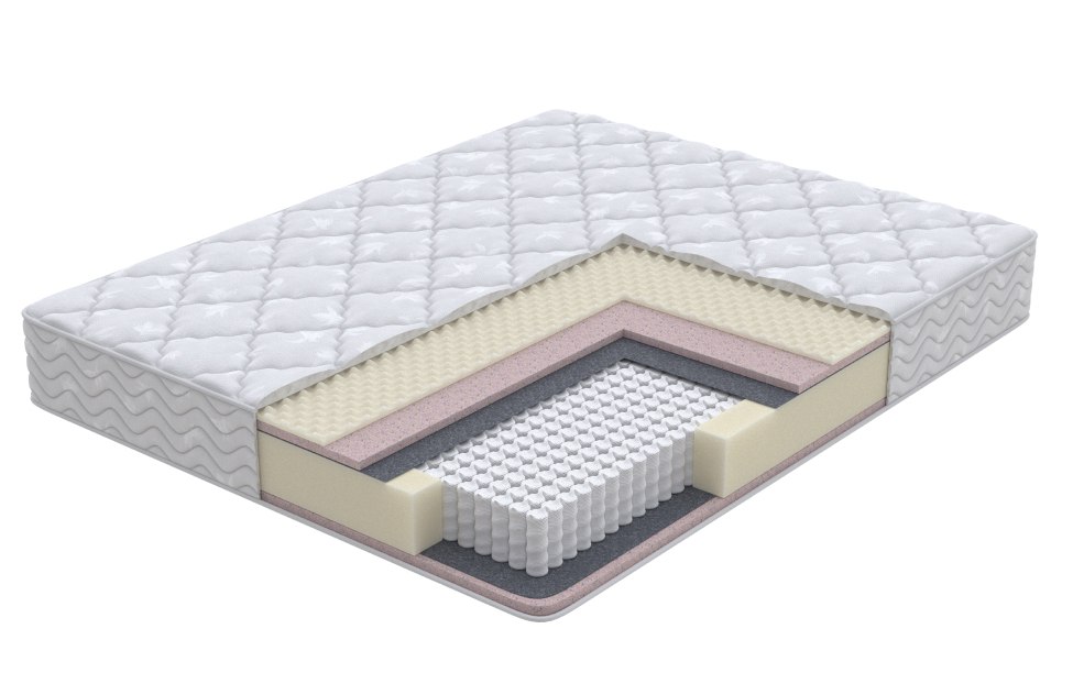 Матрас двухсторонний, средней жесткости с одной стороны и выше средней с другой, что позволит изменять ощущения от матраса в зависимости от предпочтений. В основе матраса 512 независимых пружин на спальное место, обладающие ортопедическими свойствами. В составе комфортных слоев Ортофом с массажным эффектом в сочетании с Эко ППУ с одной и Эко ППУ с другой стороны. Чехол матраса выполнен из трикотажной ткани, простеганный на дополнительном слое Ортофом.