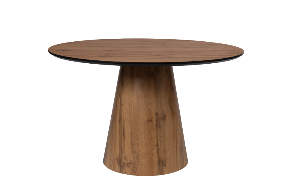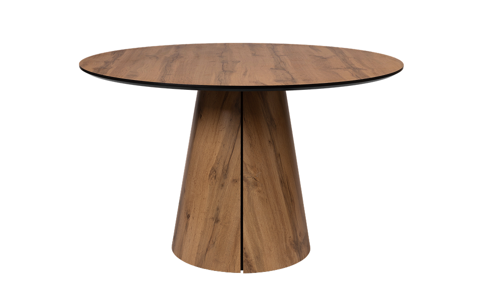 Стол обеденный Бруно - трендовая модель круглого не раскладного стола. Столешница выполнена из антивандального пластика HPL дублированного МДФ 19. Нога выполнена из гнутоклееной фанеры, покрытой антивандальным пластиком HPL.