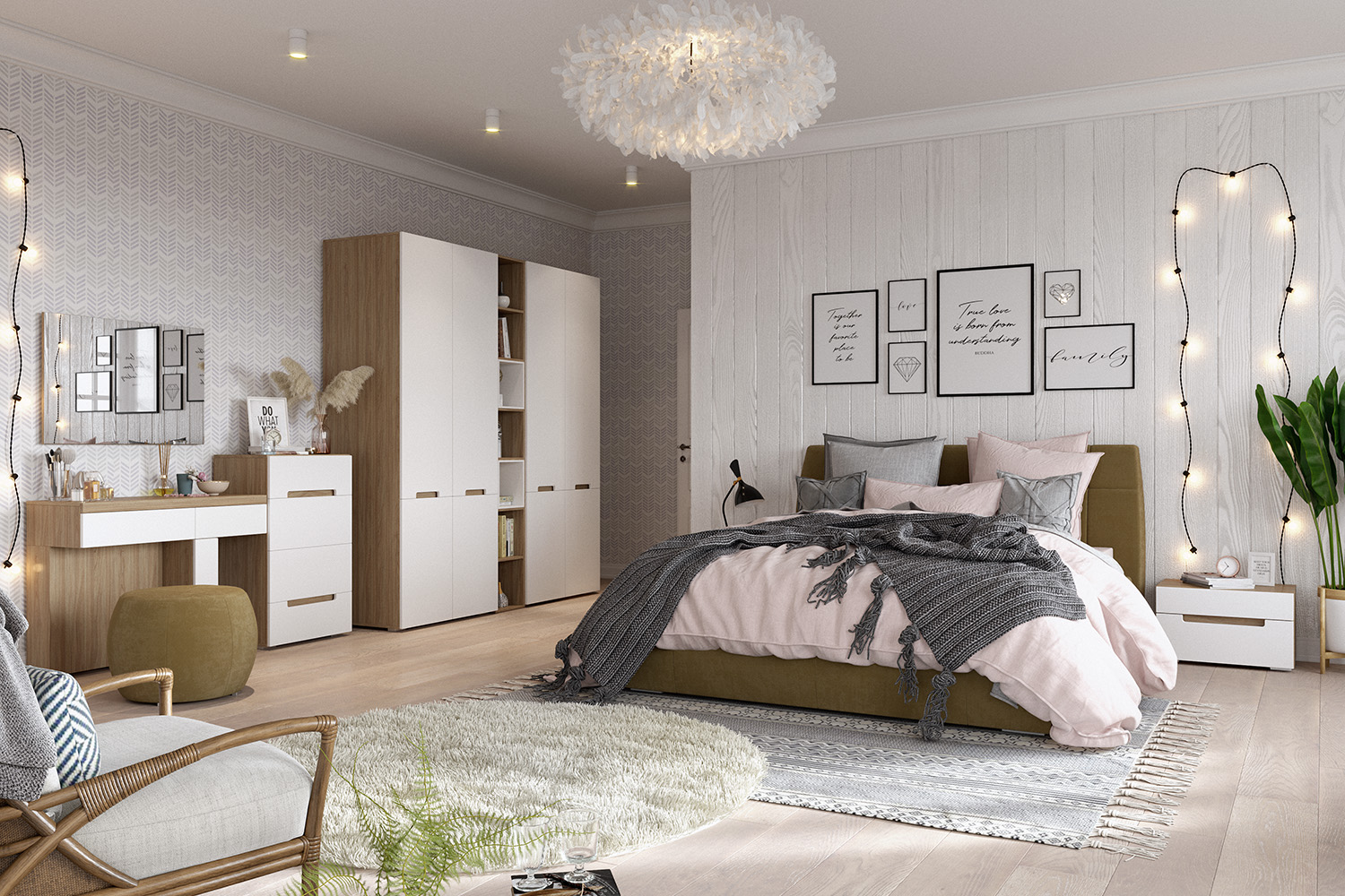– описание: стиль современный, минимализм, цвет швейцарский вяз, белый, размер 101.2x60.1x41.3 см, назначение для спальни.