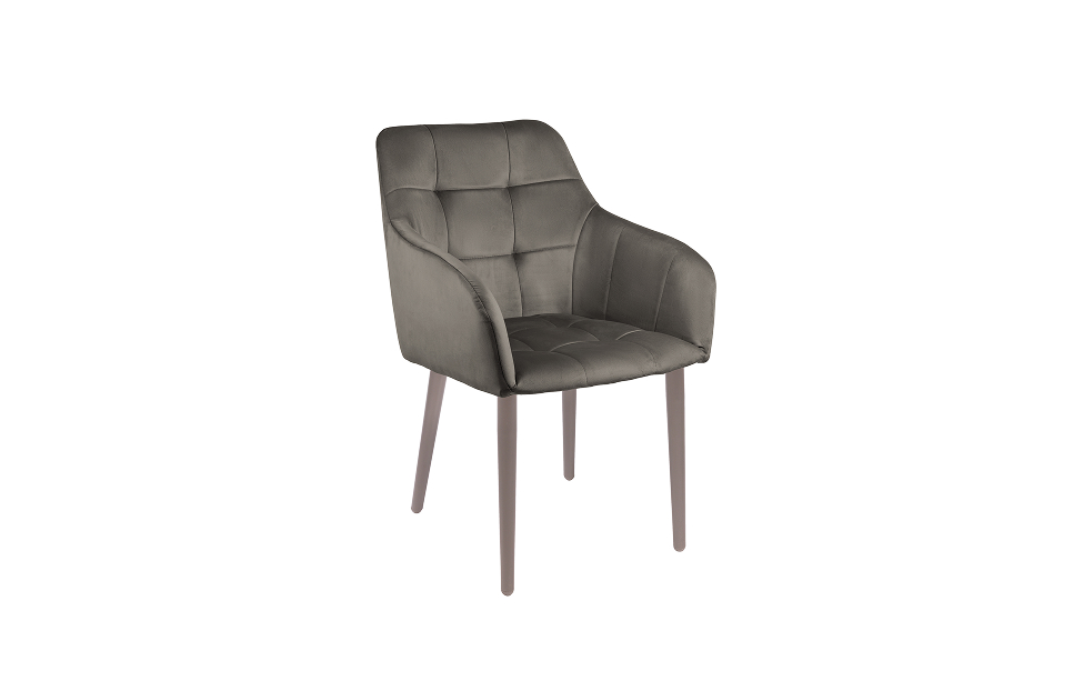Стул-кресло Отэм прекрасно впишется в любой интерьер и комнату. Такой стул можно использовать как в качестве обеденного стула, так и в виде рабочего кресла к письменному столу. Обивка из велюра в актуальном сером оттенке прекрасно гармонирует с металлическими ножками черного цвета. Такие стулья украсят современные интерьеры, а также пространства в стиле эклектики.