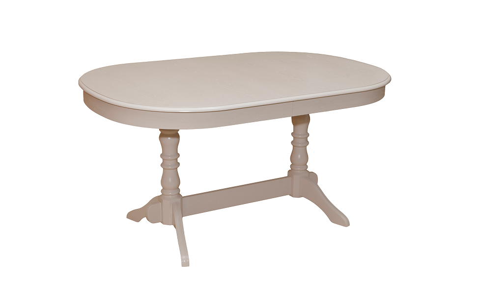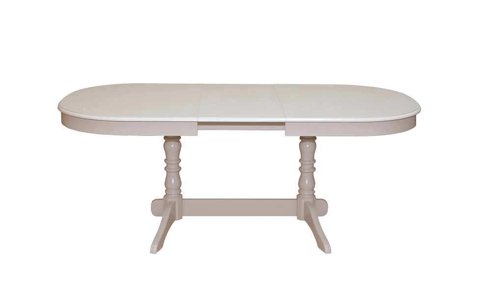 Изящный овальный стол в молочном цвете с фигурными ножками подойдет для обстановки прованс или неоклассика. Столешница выполнена из МДФ, облицованной ясеневым шпоном, и имеет встроенный механизм трансформации с неразрезной вставкой. Металлические элементы изготовлены из нержавеющей полированной стали. После трансформации длина стола увеличивается почти в полтора раза, достигая 240 см.