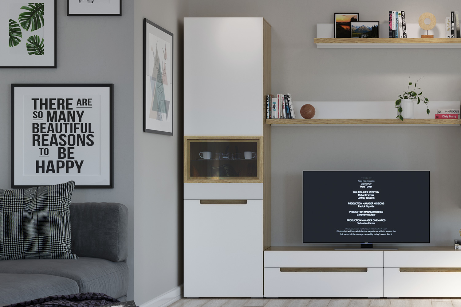 – описание: назначение для гостиной, цвет швейцарский вяз, белый, стиль современный, минимализм, размер 213.2x60.1x41.6 см.