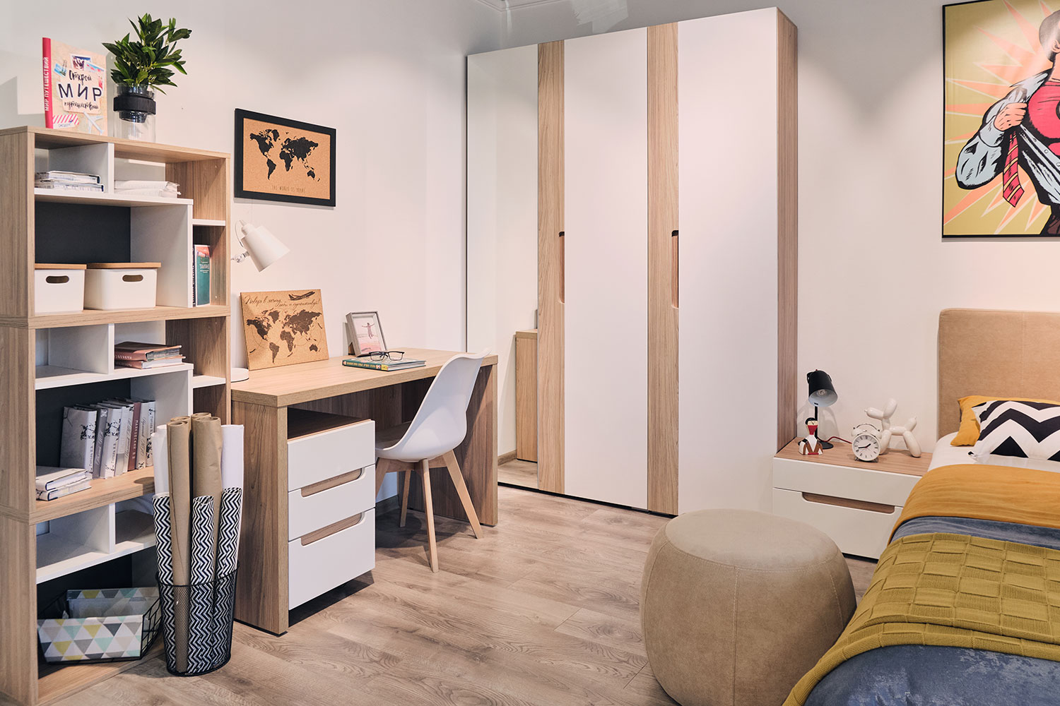 – описание: стиль современный, минимализм, назначение для детской, размер 60.9x40x46 см, цвет швейцарский вяз, белый.