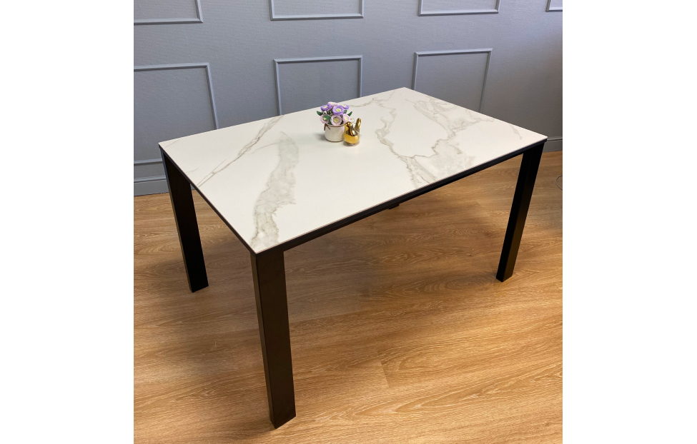 Купить Стол обеденный Легро раздвижной черный/керамика мрамор белый в интернет-магазине мебели «Ангстрем»