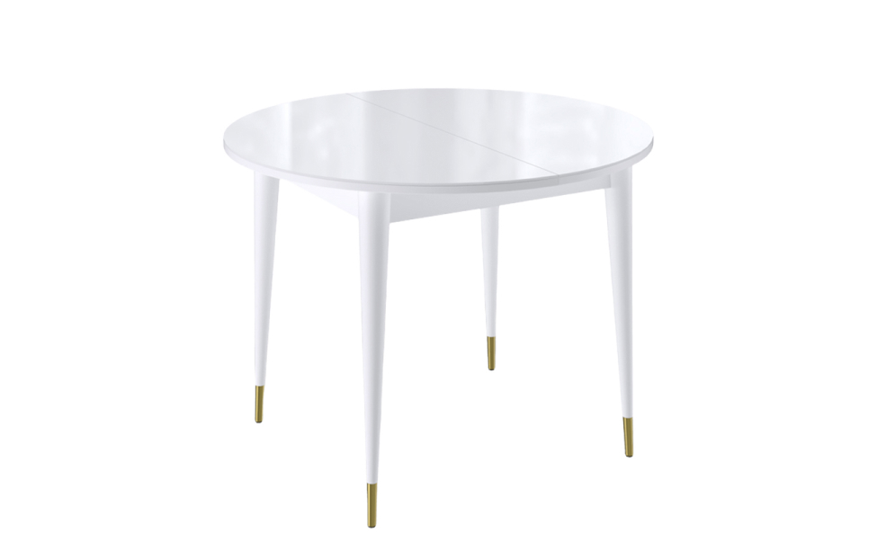 Стол обеденный Мане круглый раздвижной К1000 опоры белый(зол)/столешница белый глянец