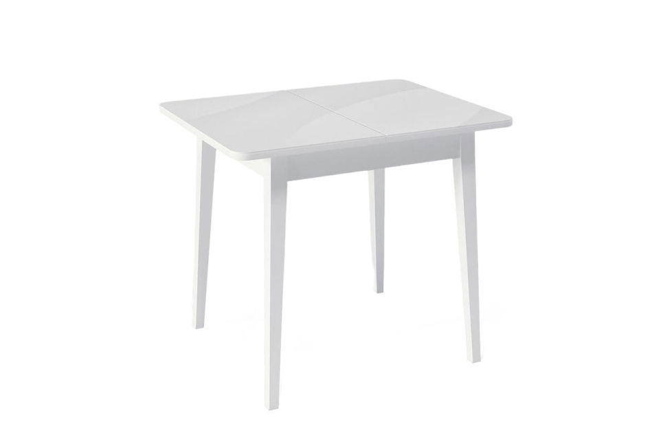 Стол обеденный Орпен квадратный раздвижной 900М опоры белые, столешница - стекло белое глянец.