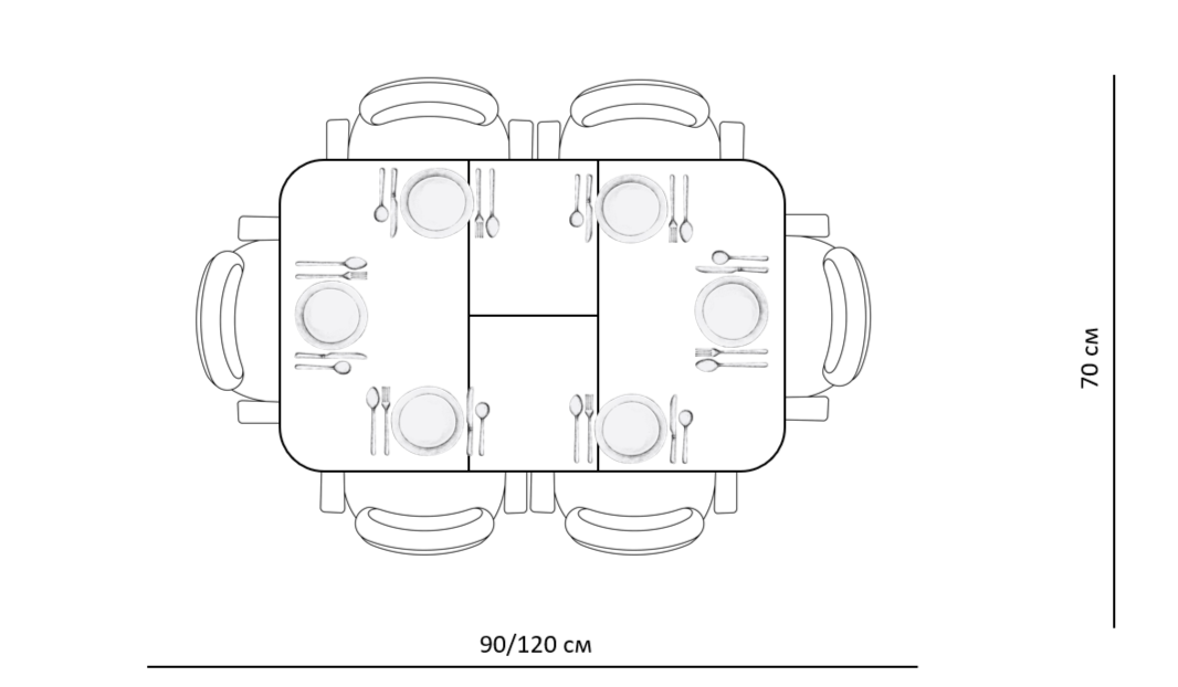 Размер стола компактный и в то же время достаточно вместительный для ежедневного использования 4 человек, по каждой стороне достаточно места чтобы поставить 4 широких стула вокруг стола. Механизм раздвижения со стеклянной вставкой позволяет комфортно посадить еще 2 гостей. Компактный и очень функциональный стол, идеален для использования как на небольшой кухне, так и в качестве уютной обеденной зоны в гостиной.