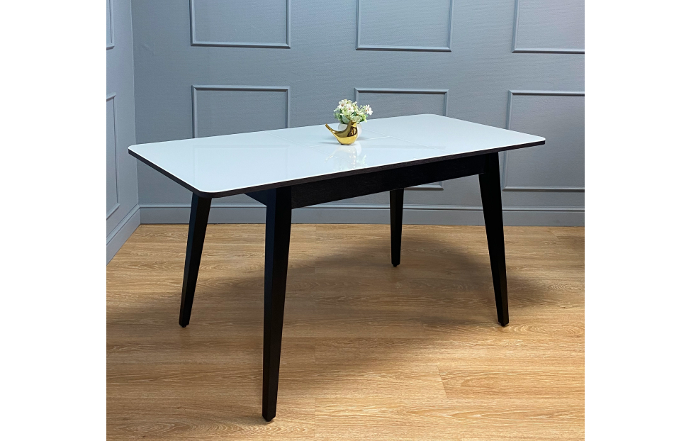 Стол обеденный Орпен квадратный раздвижной 1100М опоры венге, столешница - стекло белое глянец. Размер стола компактный и в то же время достаточно вместительный для ежедневного использования 4 человек, по каждой стороне достаточно места чтобы поставить 4 широких стула вокруг стола. Механизм раздвижения со стеклянной вставкой позволяет комфортно посадить еще 2 гостей. Компактный и очень функциональный стол, идеален для использования как на небольшой кухне, так и в качестве уютной обеденной зоны в гостиной. Столешница из стекла надежно защищает стол от влаги и горячего. Для данного стола применяется дорогое, просветленное стекло optiwhite которое передает чистый, яркий цвет без зеленого бутылочного оттенка.