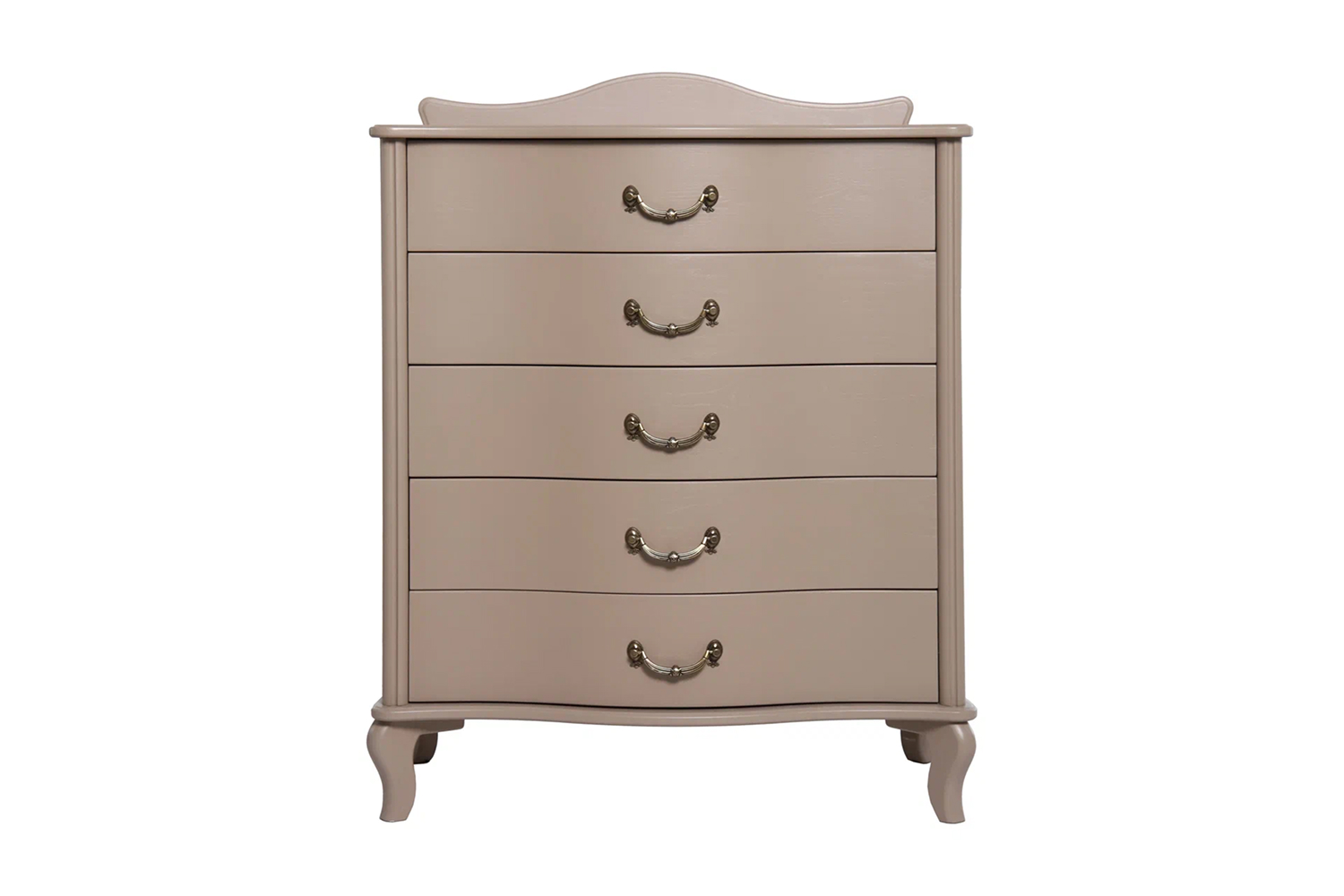 Классический комод Джульетта - воплощение вневременной элегантности и безупречного вкуса. Пять удобных выдвижных ящиков позволяют наиболее функционально использовать пространство и объем комода. Материалы, из которых выполнен комод, обеспечивают высочайшую надежность. Модель, вдохновленная лучшими традициями европейской мебели, станет изысканным акцентом в вашем интерьере. Плавные линии резных ножек-кабриолей придают комоду утонченную грацию и воздушность.