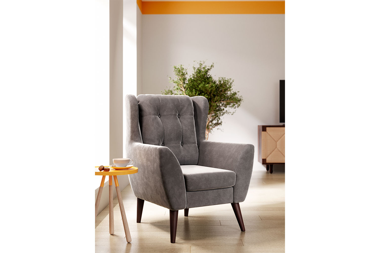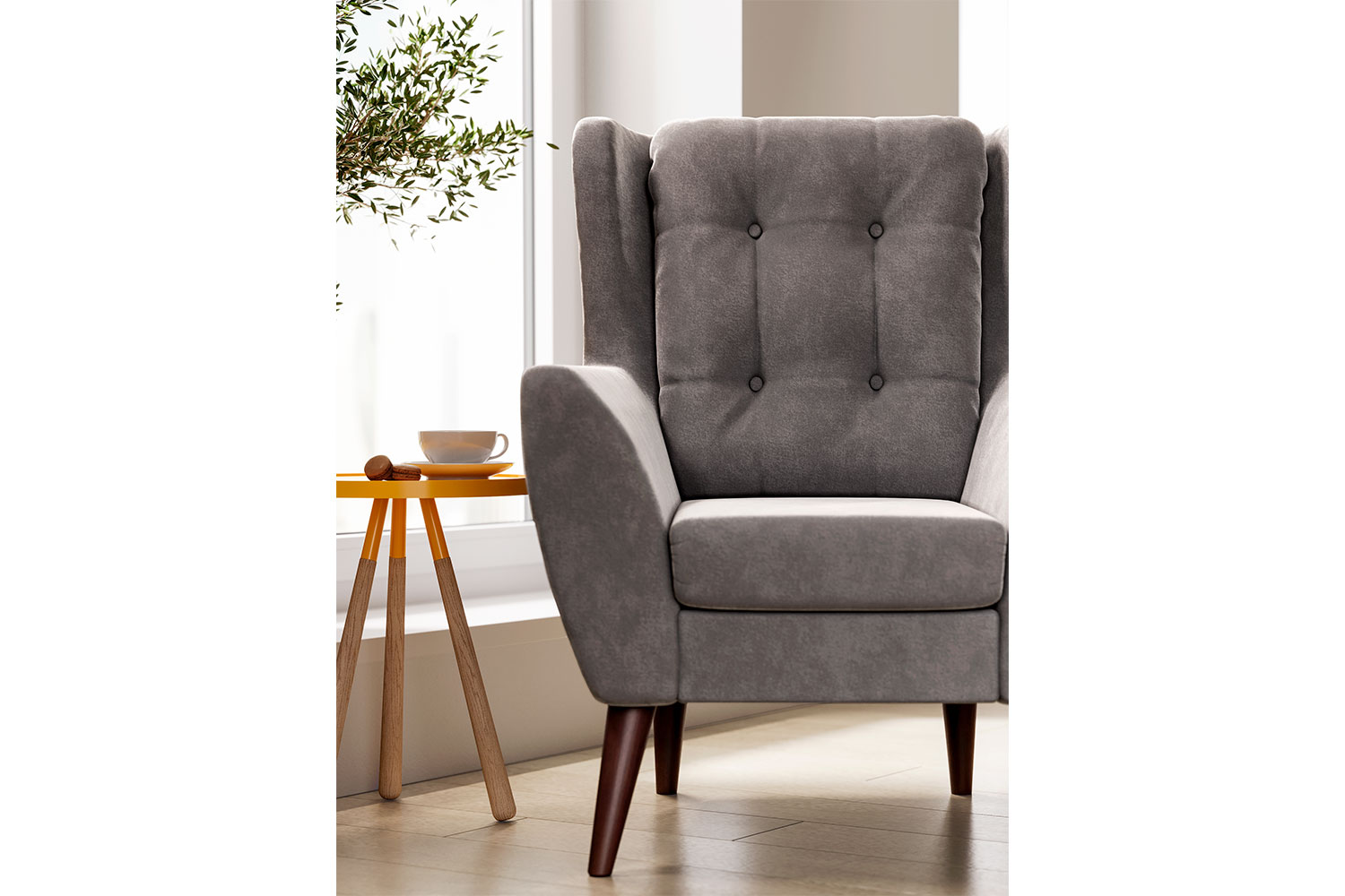 – описание: размер 107x84x93 см, стиль скандинавский, лофт, современный, цвет светло-серый (velutto 12), материал обивки велюр.