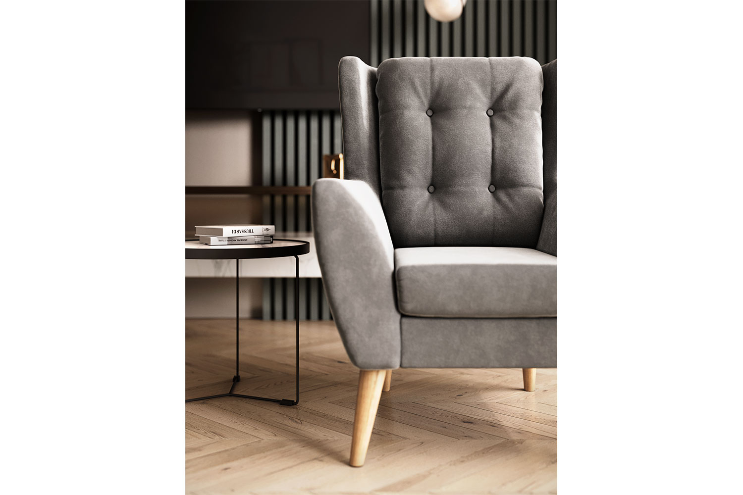 – описание: цвет светло-серый (velutto 12), размер 107x84x93 см, стиль скандинавский, лофт, современный, материал обивки велюр.