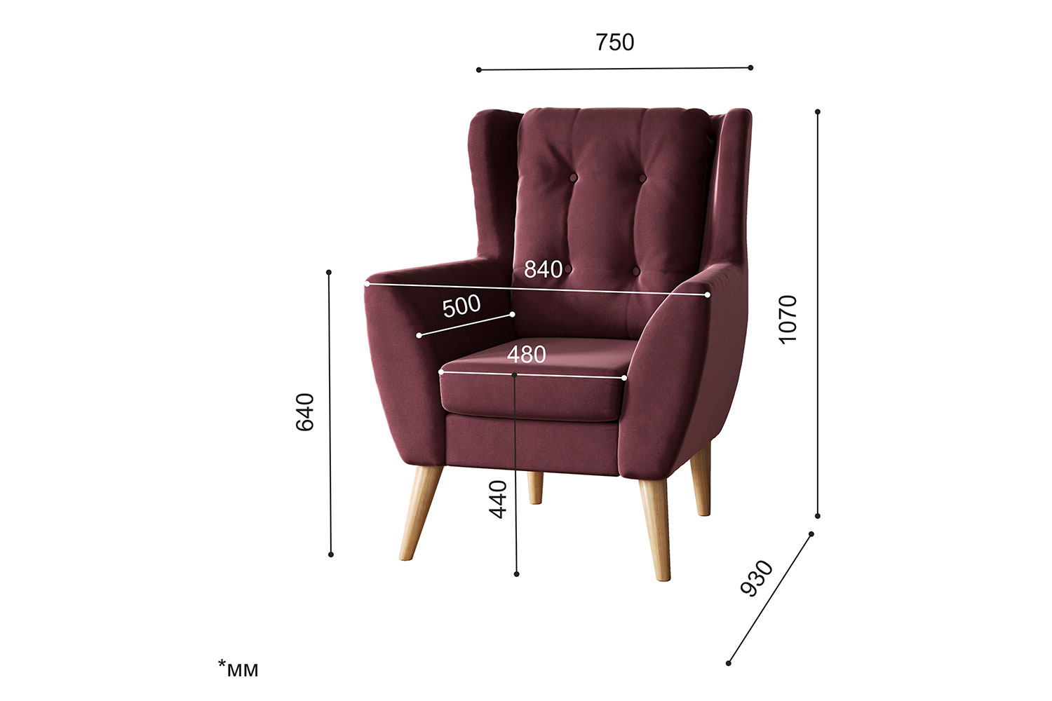 – описание: размер 107x84x93 см, цвет марсала (velutto 15), материал обивки велюр, стиль скандинавский, лофт, современный.