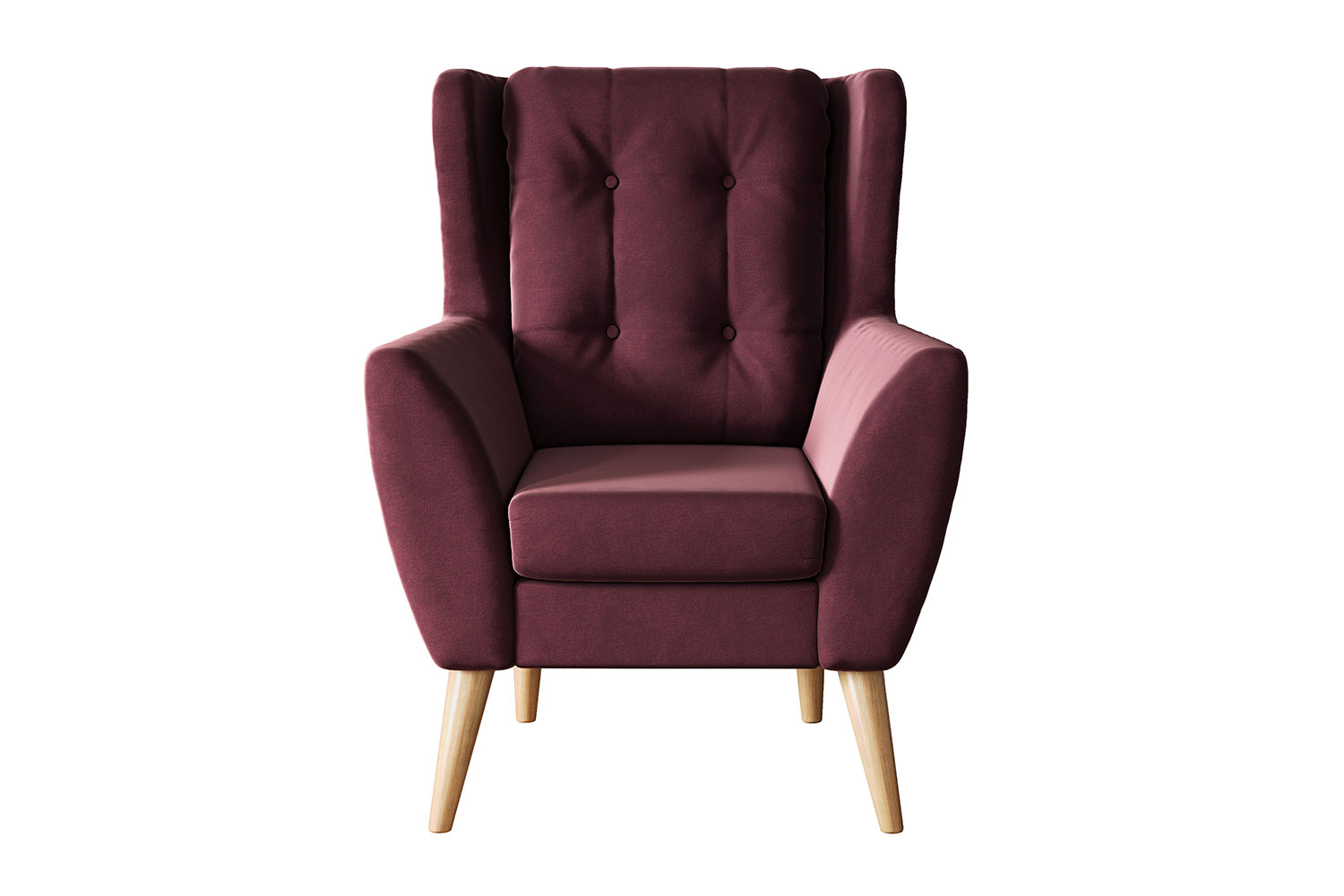 Модель частично заимствовала очертания у вольтеровского кресла с ушами. Нестандартное оформление впишется в рабочий кабинет в стиле английская классика, модерн, лофт или сканди. Оттенок бордо дает выразительности приглушенному индустриальному интерьеру и создает увлекательный акцент в нордической обстановке. Элегантный дизайн подчеркивают стяжка с пуговицами и тонкие длинные ножки древесного цвета.