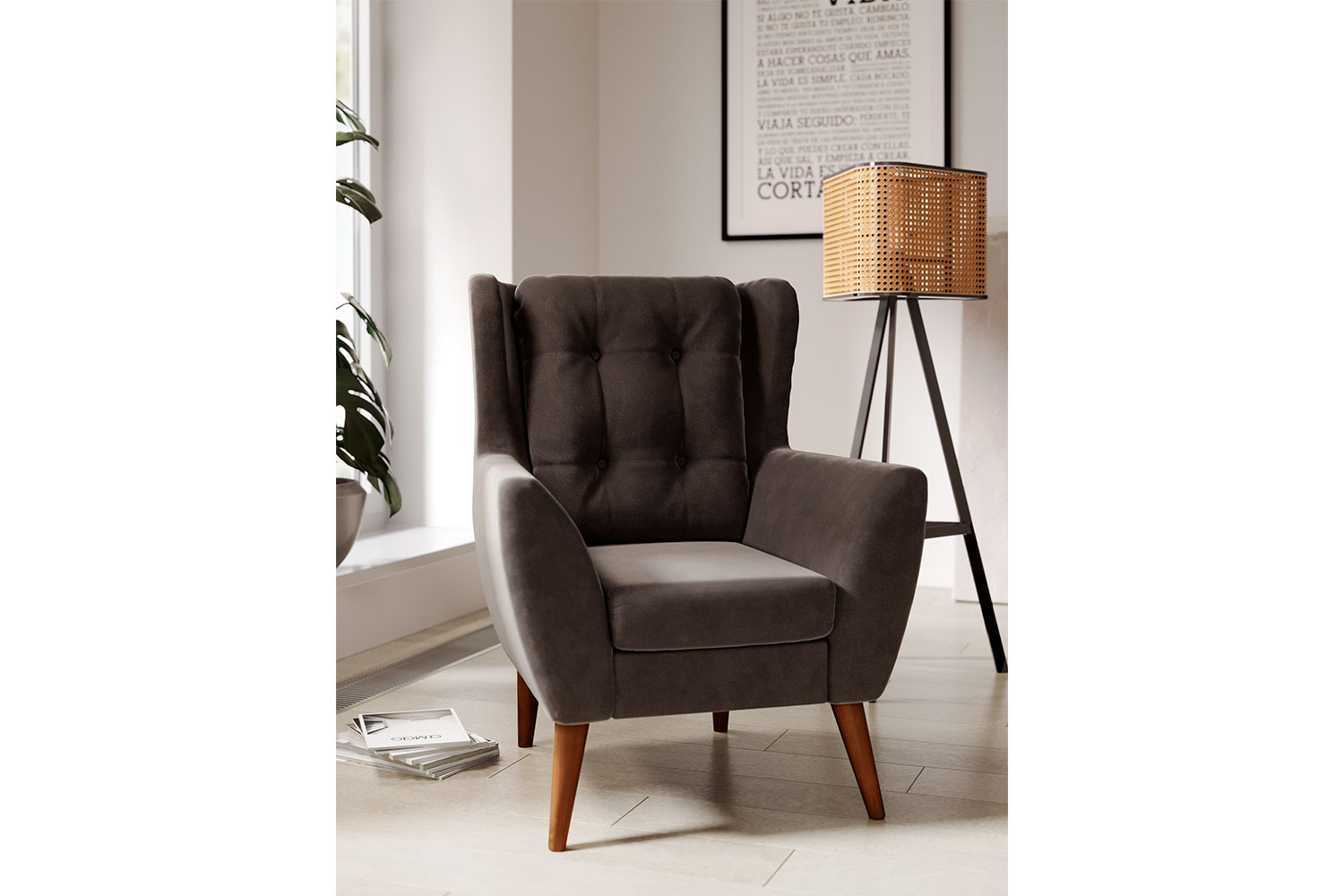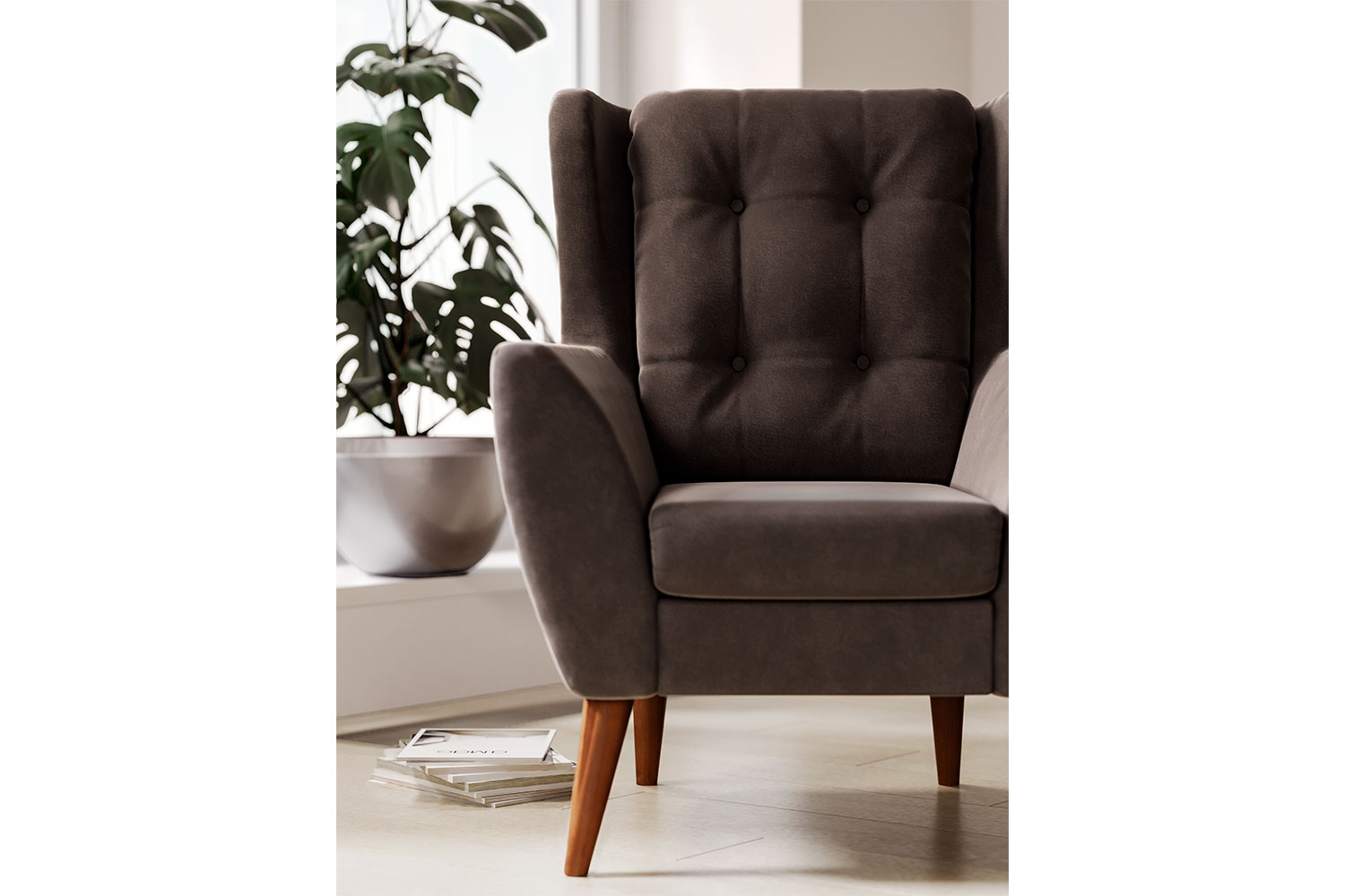 – описание: материал обивки велюр, стиль скандинавский, лофт, современный, цвет коричневый (velutto 19), размер 107x84x93 см.