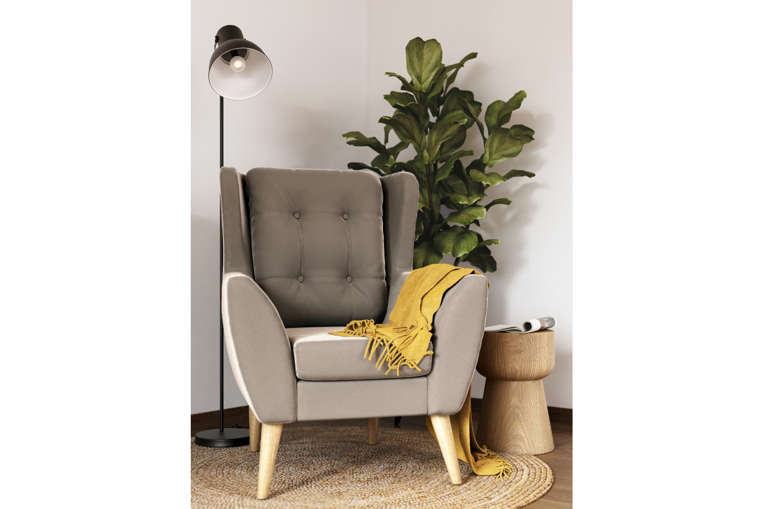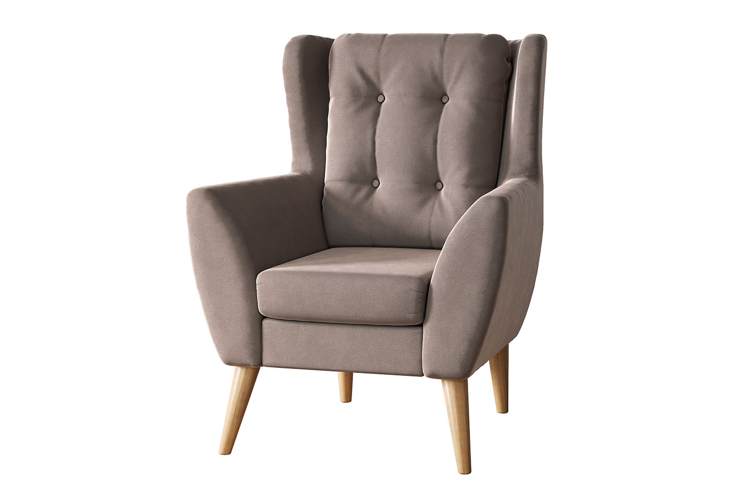 Модель «wing chair» выглядит изысканно и элегантно. Высокая, слегка изогнутая спинка и удобные подлокотники обеспечивают комфортную посадку. Светлые скошенные ножки из массива дерева контрастируют с основным цветом мебели и органично выделяются в конструкции. Обтекаемые формы и выступающие «уши» делают кресло подходящим для интерьера в английском стиле, особенно удачно кресло будет смотреться рядом с камином. Минималистичный дизайн позволяет использовать модель и для оформления обстановки в стиле лофт или сканди, гостиной, домашней библиотеки и рабочего кабинета.