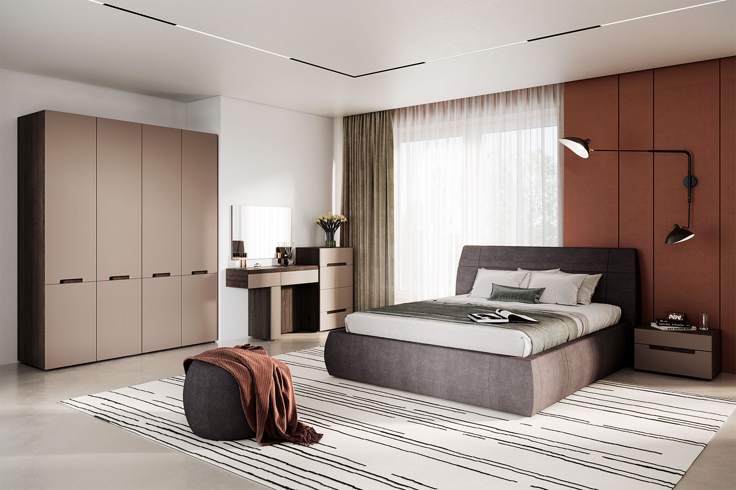 • Для спальни используется крепежная фурнитура и механизмы ведущих производителей. Такая фурнитура позволит мебели прослужить дольше, не требуя частого ремонта. Петли оснащены доводчиками для более плавного закрывания дверей;